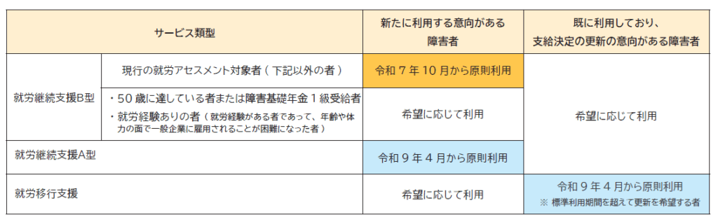 「福祉・雇用それぞれのサービス体系におけるアセスメント( ニーズ把握、就労能力や適性の評価) の仕組みを構築・機能強化」する目的で新設されました。